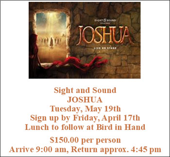 Due to our limited parking, we ask that when you go on one of our trips, please park in the Nazarene Church parking lot. The church has graciously allowed us to park there. This will keep the limited street parking spaces open for folks visiting us during the day.